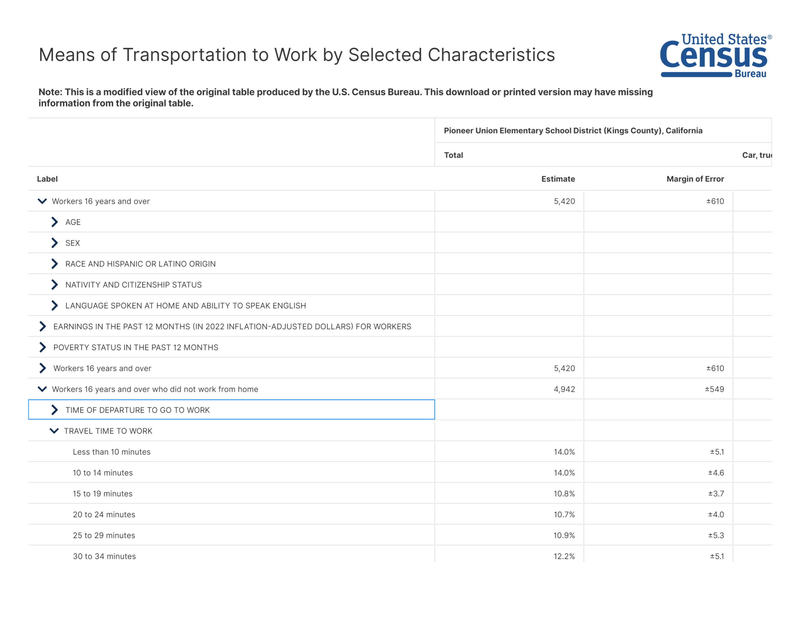 The number of students per employee is determined by using the S0802: Means of Transportation to Work by Selected Characteristics 2018-2022 American Community Survey 5-Year Estimates and DP1: Profile of General Population and Housing Characteristics 2020: DEC Demographic Profile for the District. There were 5,420 employees and 4,189 homes in the District. This represents a ratio of 1.2939 employees per home.