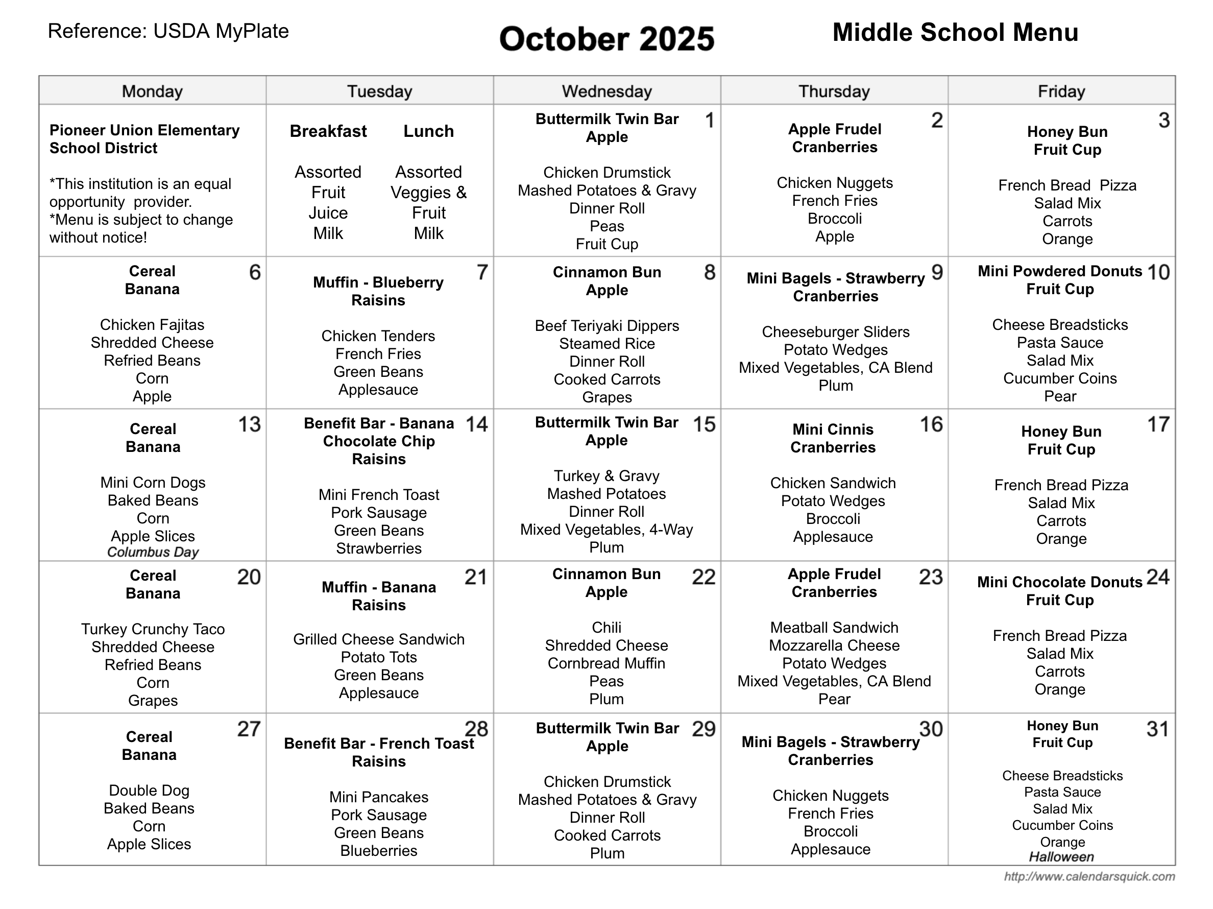 Please note: Menu is subject to change without notice. This institution is an equal opportunity provider.