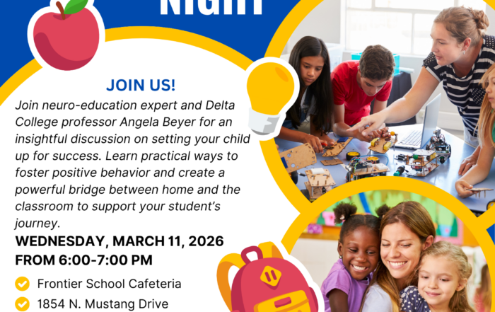 Parent Education Night Join neuro-education expert and Delta College professor Angela Beyer for an insightful discussion on setting your child up for success. Learn practical ways to foster positive behavior and create a powerful [...]